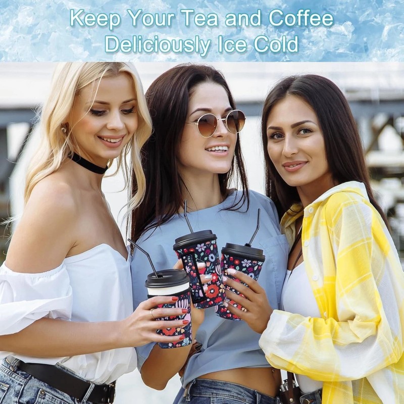 3-Pack Reusable Iced Coffee Sleeves, Fits 16-32 oz Cups, Insulated & Floral