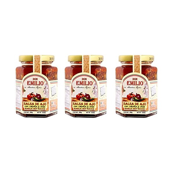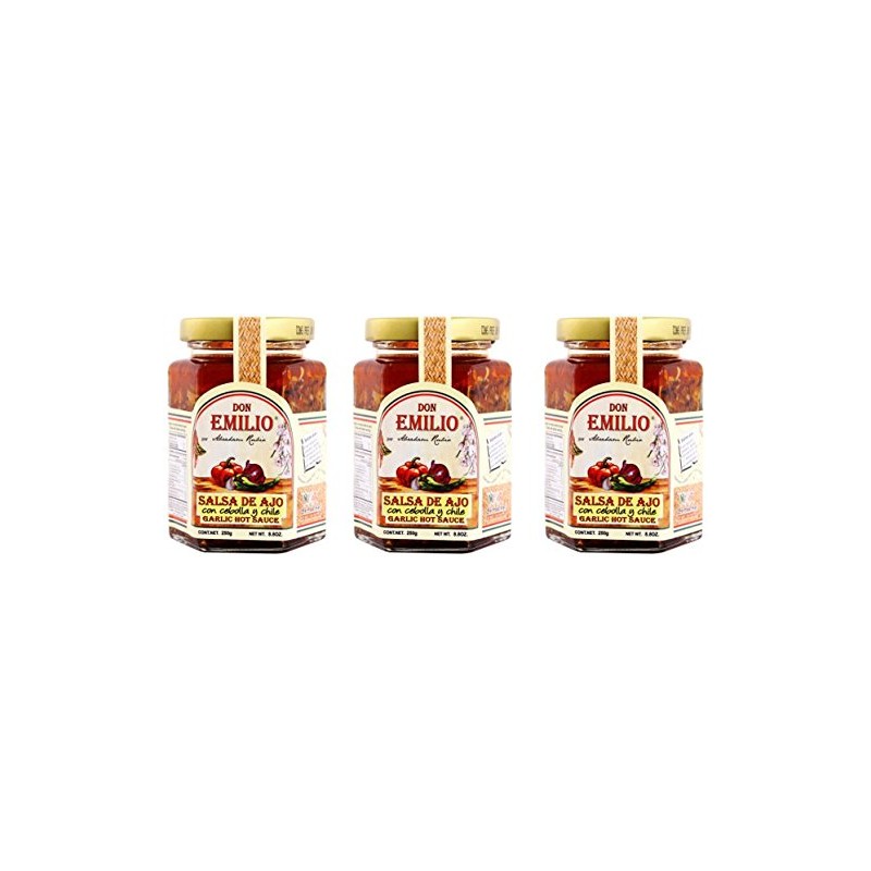 3 pack Salsas "Machas" Don Emilio 9 oz (Garlic & Onion), MILD, made in México