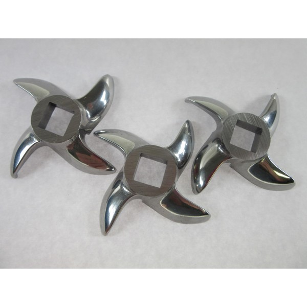 3-PACK Size #8 Stainless Steel meat grinder knife for LEM, Cabelas, Northern Tool, Weston etc