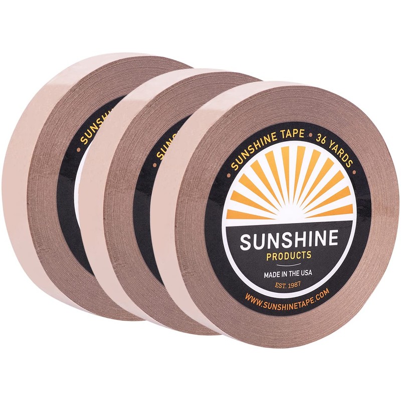 3 Pack - Sunshine Wig Adhesive Tape Roll - 1" x 36 YDS - Double Sided, Medical Grade - Natural Look Brown Liner Toupee and Wig Tape
