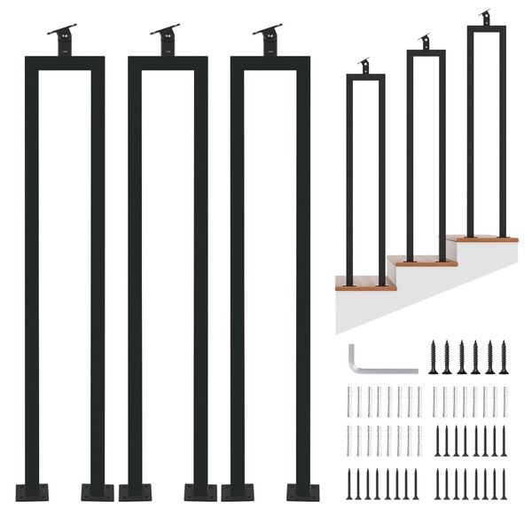 3 Pack U Shape 41" Stair Balusters with Adjustable Top Bracket for Staircase Interior, Baluster for 42" Railing Stair Handrail Indoor Steps by LukLoy