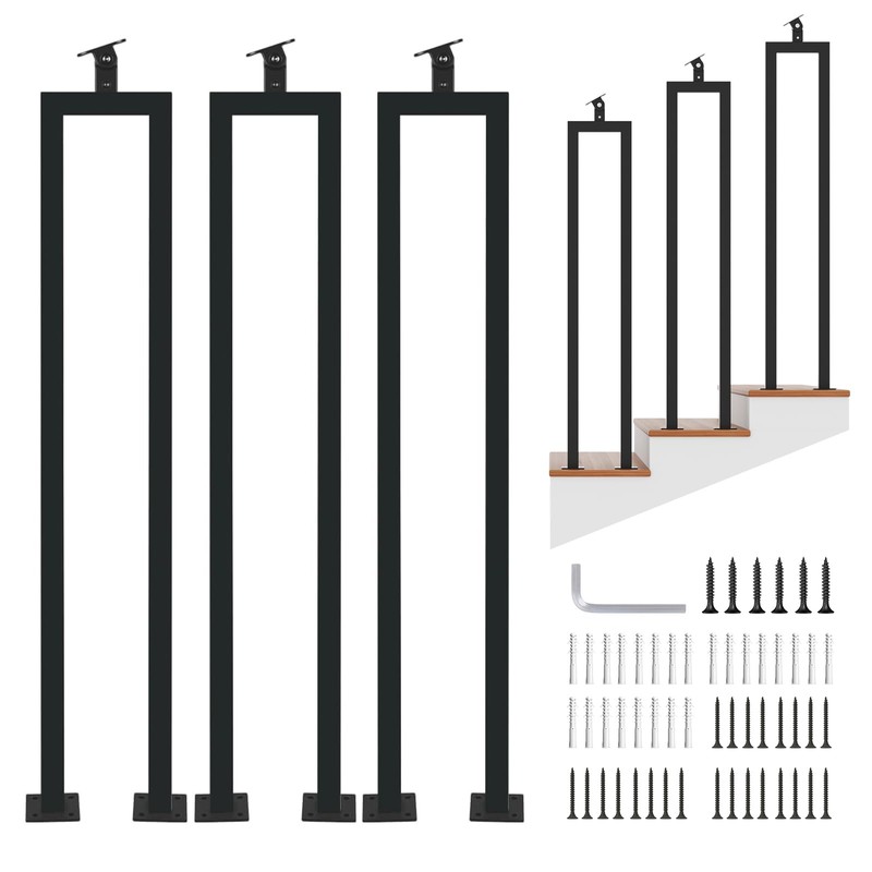 - Quick and Easy Installation: Each hand rail set includes 4 floor screws and 2 handrail screws for connecting the wood handrail, allowing for a hassle-free installation process. Transform your space effortlessly with this functional and attractive U-shaped stair railing.