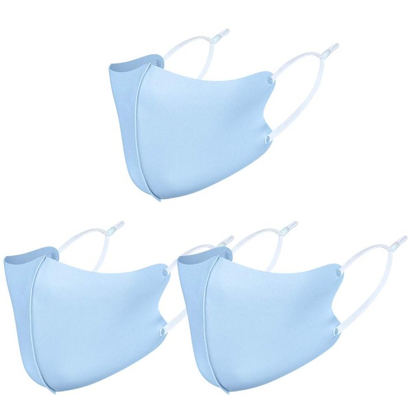 3 Pack Unisex Fabric Reusable Face Mask, with Ear Loops, Breathable, Soft, Washable, Durable for Everyday Public Use, Blue