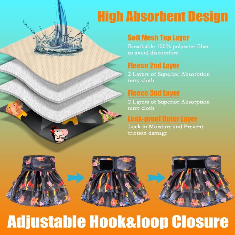 - Multiple Sizes: The reusable pet diapers come in 6 sizes, suitable for different breeds of dogs, with adjustable hook and loop closure