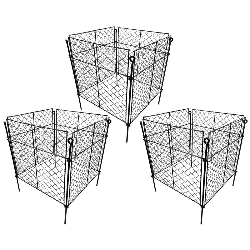- Each box contains 3 black metal protective cages, assembled from 12 panels size 12" H × 13.8" W.