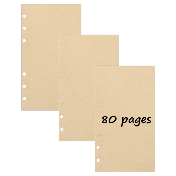 3 Packs A6 Blank Kraft Refill Paper, 6 Hole Filler Inserts Loose Leaf Paper 240 Sheets for Scrapbooks Journals Painting Diary