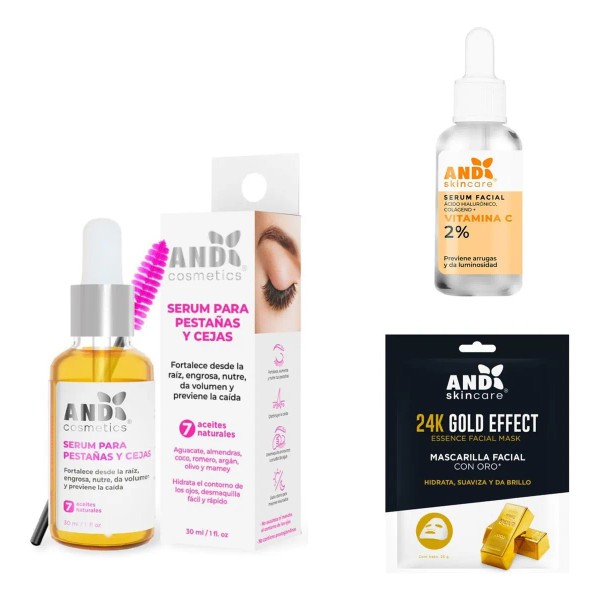 🕒 Modo de uso: Aplicar cada producto según indicaciones: serum en pestañas limpias, vitamina C en rostro limpio y seco, mascarilla de oro una o dos veces por semana para un tratamiento intensivo, y seguir las instrucciones de los packs incluidos para un cuidado óptimo 📅🧴.