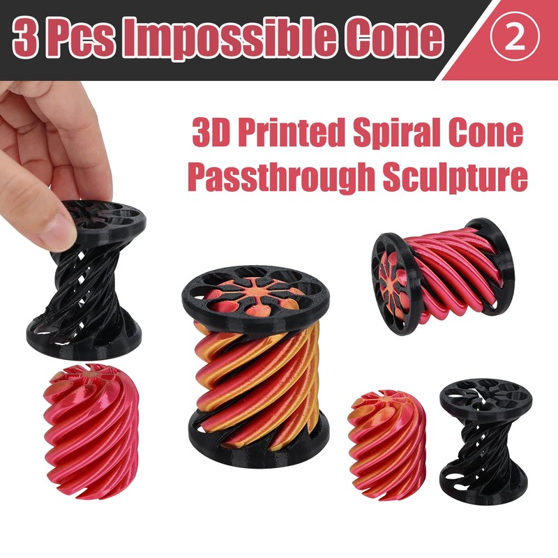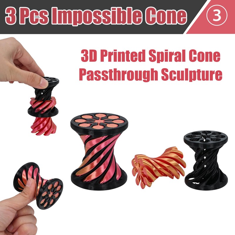 3 Packs Impossible Cone, 3D Printed Spiral Cone Fidget Toy, Impossible Cones Passthrough Impossible Pyramid for Relaxing, Spiral Fidget Toy Passthrough Impossible Cone, Mini Stress Relief Gift