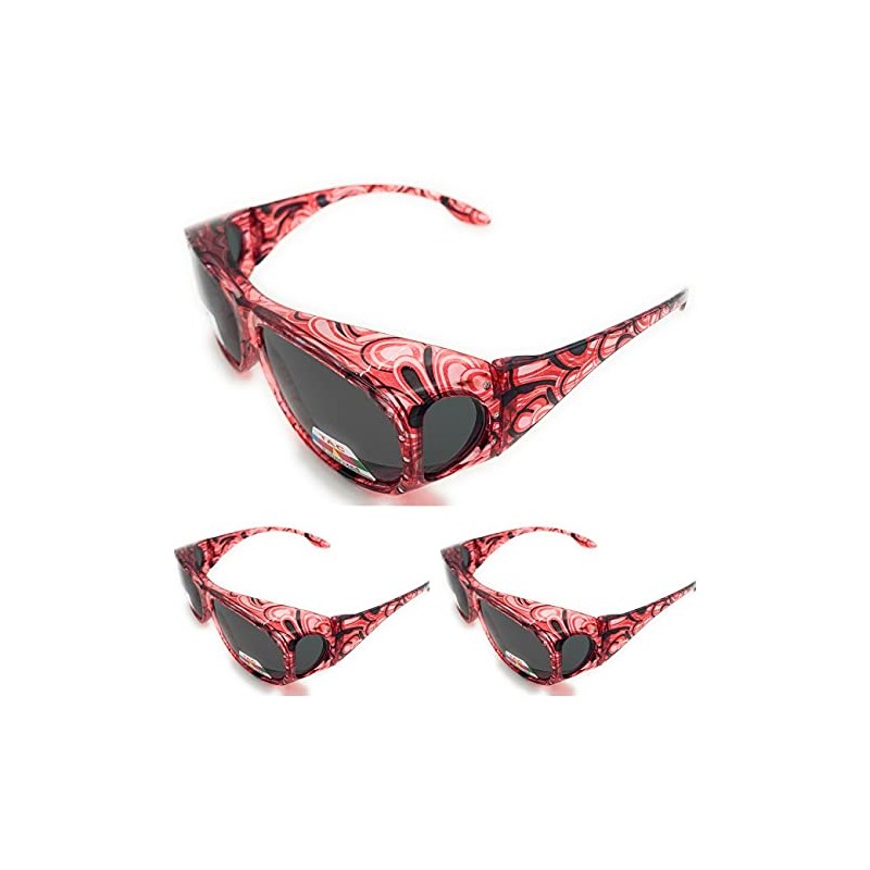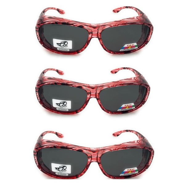 3 Pair Polarized Rhinestone Sunglasses Fit Over Glasses Oval Rectangular Sunglasses (RS2865 Light Red)