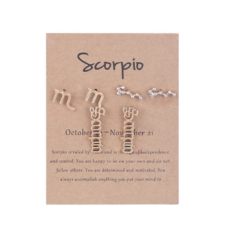 3 Pairs 12 Constellation Zodiac Sign Stud Earrings Star Astrology Horoscope Wish Card for Women Birthday Anniversary Friendship Jewelry-Scorpio