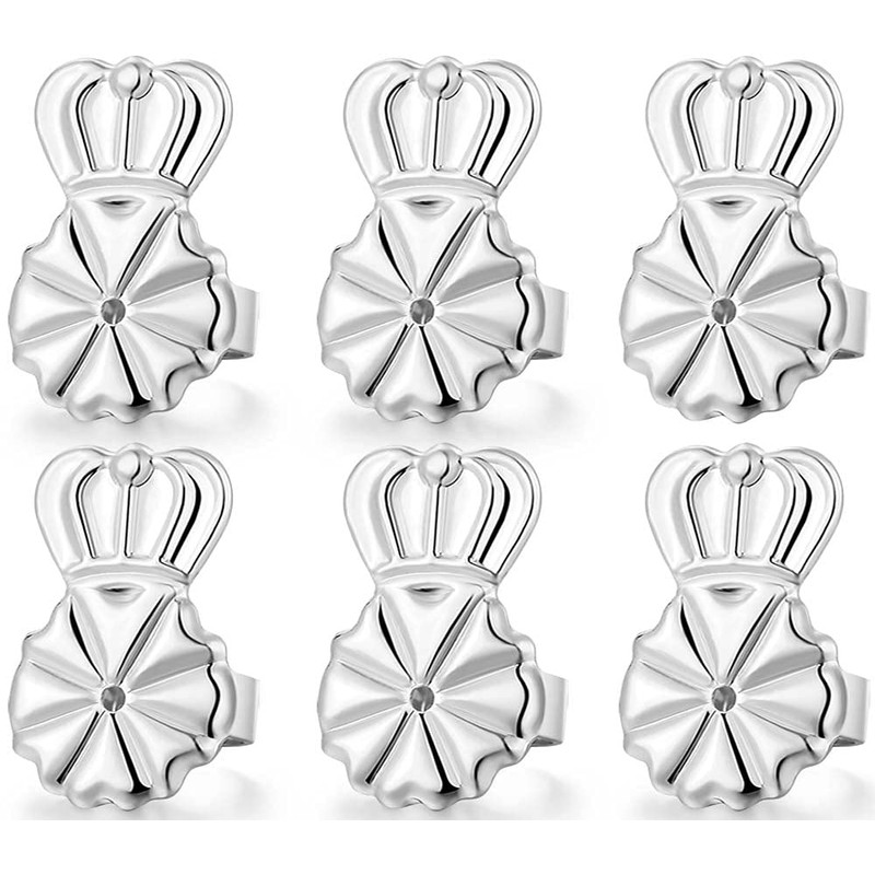 - 18k White Gold Plated:3 Pairs Of Silver Crown Earring Backs,18k White Gold Plated To Make It More Shiny,A Small Gift Box Is Included For Storage And Carrying