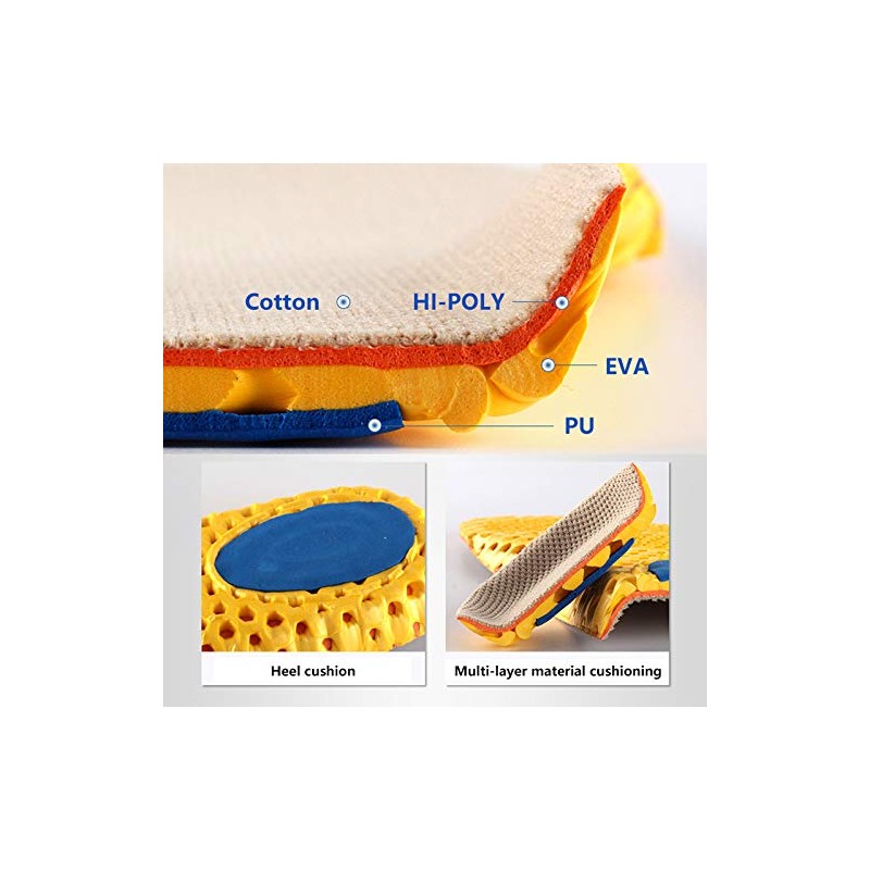 Designed for Daily Use: Back of insoles are made of advanced PU and EVA, to disperse impact force and provide better bounce for your each footstep. Suitable for all types of casual or daily shoes. Provide moderate stablization and support for sneakers or climbing shoes, work shoes and boots.