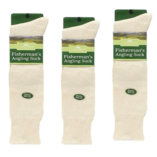 3 Pairs Fisherman's Angling Socks Boot Wool Country Fishing Socks , 6-11, Cream