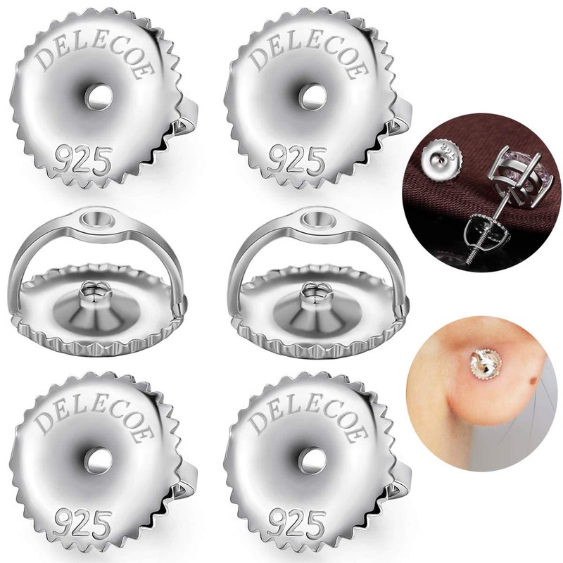 - 【925 STERLING SILVER &18K GOLD PLATED】DELECO Screw Earring Back use Real 925 Sterling Silver Materials and 18K White Gold Plated, Nickel Free, Lead Free, Hypoallergenic. Keep Duarable & Shinning Forever.