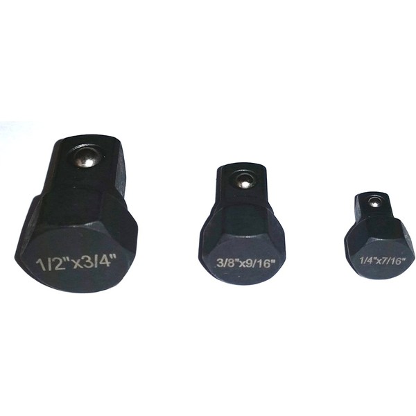 3 PC Square Drive Socket Caps, Hex 7/16", 9/16" & 3/4" with 1/4", 3/8" & 1/2" Drives