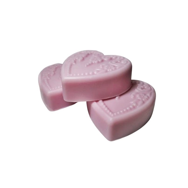 Heart shaped bath soaps with a scroll design made with our Shea Butter & Goat Milk Soap in classic carnation, a spicy floral.