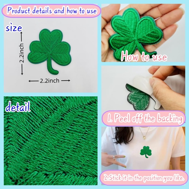 - Material: 100% fully embroidered, soft and durable.The back of the Lucky Shamrock patch is Self adhesive, which is easy and widely used.