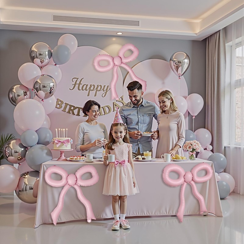 - 【Complete Set】 Each set includes 3 large 25-inch pink bow balloons, a straw for easy inflation, and a white ribbon. These pink bows are ideal for girls' birthday decorations or as a statement piece in bow birthday decorations for women. Whether you're decorating for a gender reveal, bachelorette party, or engagement celebration, this bow balloon set is a must-have.