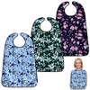 3 Pcs Adult Bibs, Waterproof Reusable Bib with Crumb Catcher for Women Men, Adult Bibs for Elderly Washable, Flower Printed Adjustable Clothing Protectors for Elderly, Senior, Disabled, Convalescents