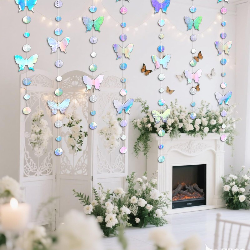- EASY TO USE:The garlands are designed for simple hanging; just unfold them carefully to avoid tangles. Each butterfly and circle is sewn together with thread, allowing for quick and straightforward installation directly on walls or backdrops