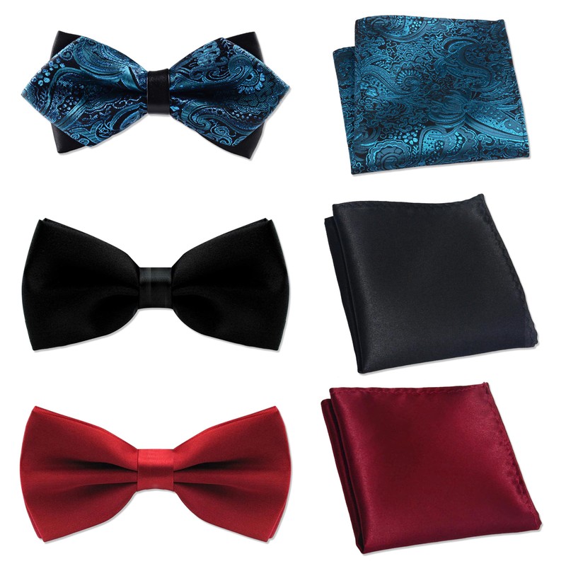- Mens Elegant Accessories Set: You will receive 3 pcs bow tie men and 3 pcs pocket square, come with different style and color, sufficient quantity and colors to meet your daily dressing and replacement needs