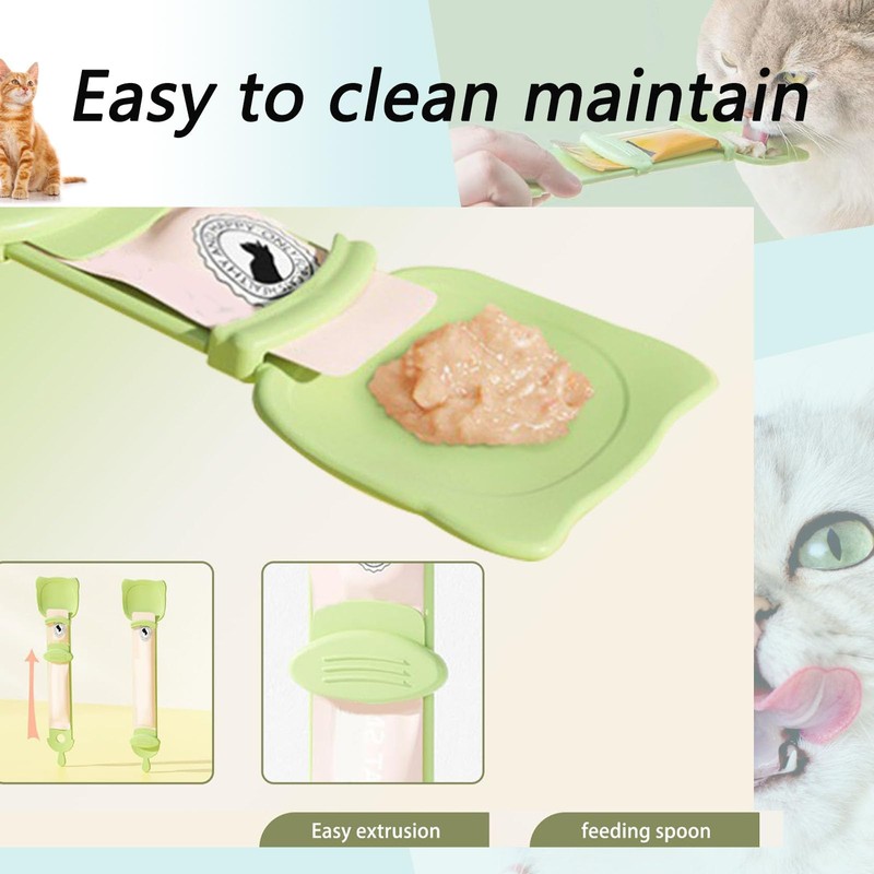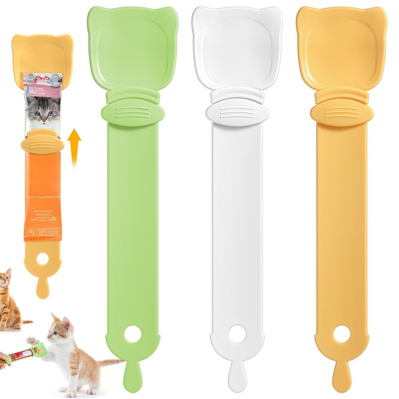 3-Pcs Cat Treat Squeeze Spoon Dispenser - Multifunctional Cat Food Feeder, Liquid Snack & Sliding Dispense