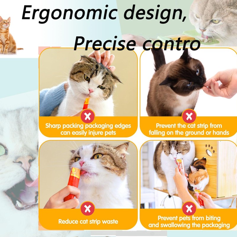 - đăConvenient operation, easy feeding experienceăThe design is ingenious, and the use process is clear at a glance. Just a few simple steps - open the squeeze spoon, insert the cat strip, tear open the seal, close the clip, and push the sliding clip to easily complete the feeding. This design greatly simplifies the feeding process, allowing owners to enjoy every moment with their pets.