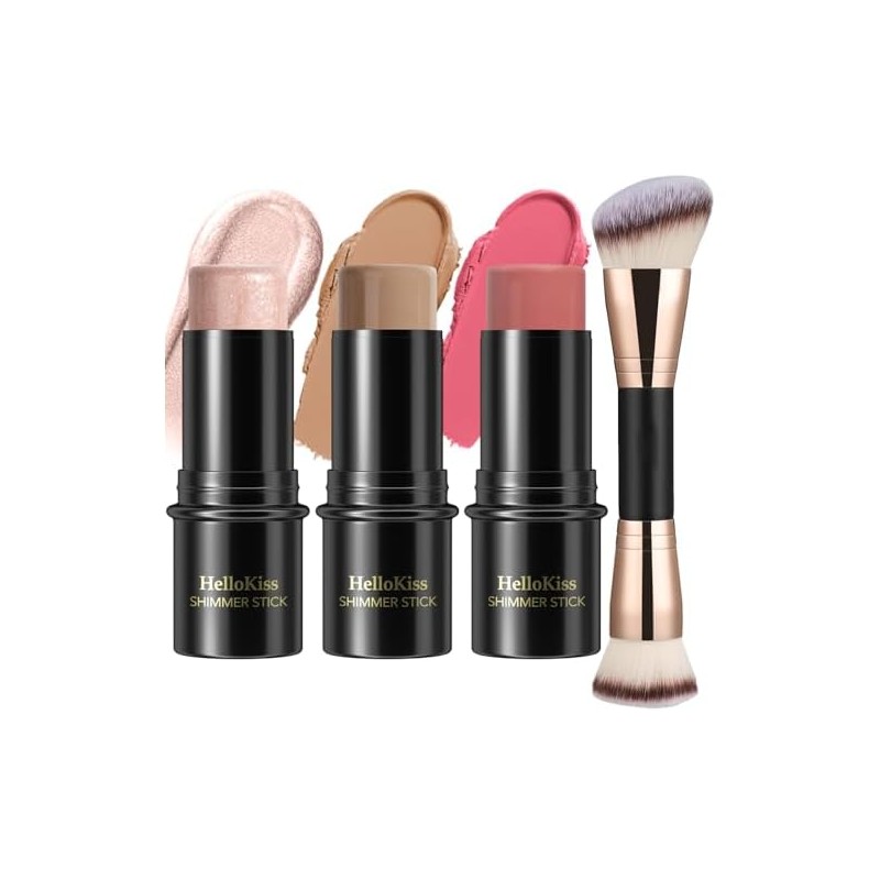 3 Pcs Cream Contour Stick Makeup Kit, Shades with Highlighter, Blush and Bronzer Contour Stick for Sculpt the Cheeks, Waterproof, Matte & Dewy Finish (Fair-Light,#03+#09+#12)