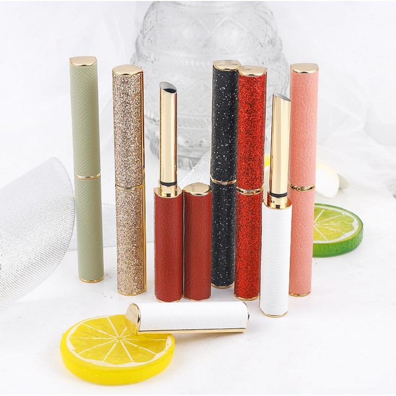 Stylish:The lipstick tube is decorated with textured PU and has golden decorative edges.The minimalist slender and elegant design adds a touch of delicacy to your lip care or makeup.