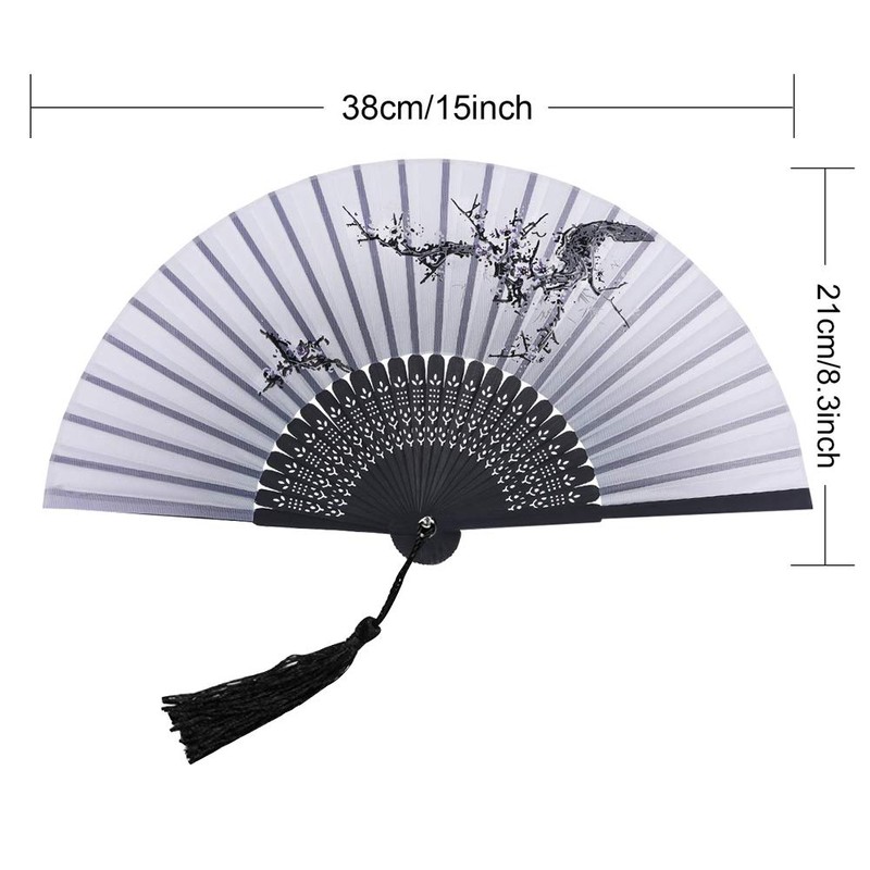 - Size:Folding fan length is about 21 cm/8.3 inches, expanded fan length is about 38cm/15 inches, compact size makes it easy to carry around when folded, and can be easily put in a bag