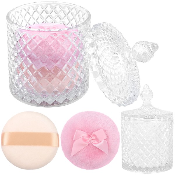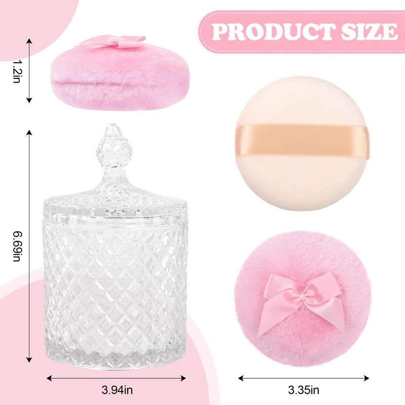 - Exquisite Design: powder container with puff: This dusting powder container with puff features a crystal glass powder jar with puff, adding elegance to your space. The set includes two soft, skin-friendly plush dusting powder puffs, perfectly paired with the glass powder container—whether you need a dusting powder container, powder container, or powder jar with puff.