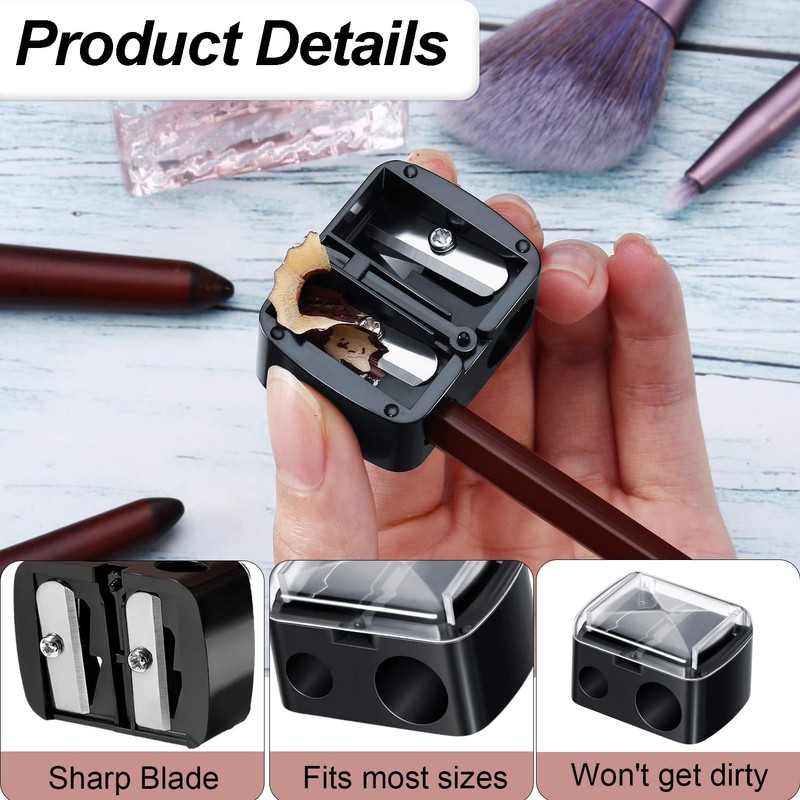 - Wide Range of Applications: This is a reliable essential pencil sharpener for makeup that will not break the pencil during the sharpening process. These cosmetic pencil sharpeners produce sharp and neat tips. Can be used for lip liner, eyeliner, lipstick pencil, eyebrow pencil, office stationery and pencil sharpeners