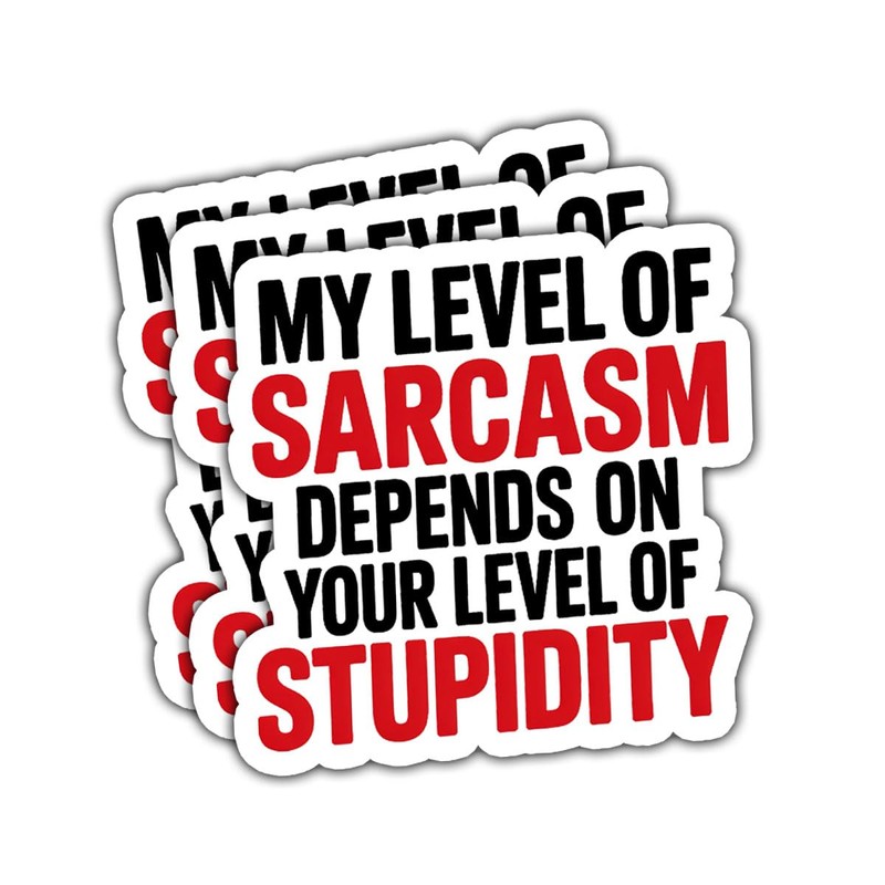 - Search us with: my level of sarcasm depends on your level of stupidity; sarcasm sticker; sarcastic quote sticker; stupid people sticker; funny sarcasm sticker; offensive humor quote; sarcastic sayings sticker; sarcastic joke sticker; bold sarcasm vinyl sticker; snarky quote sticker; dry humor sticker; savage quote sticker; passive aggressive quote; sarcasm funny insult sticker; sarcastic one-liner sticker