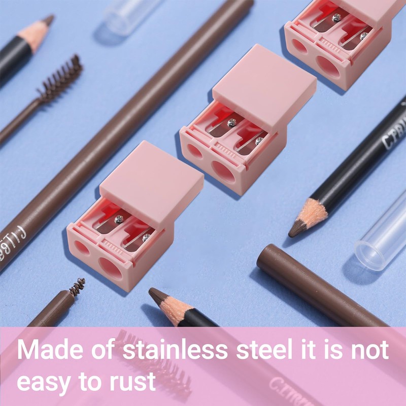 The dual-hole design accommodates both standard and large pencils. Perfect for lip crayons, eyeliner sticks, brow pencils, and more, it functions equally well as an eyeliner pencil sharpener, lip liner sharpener, or eyebrow pencil sharpener.