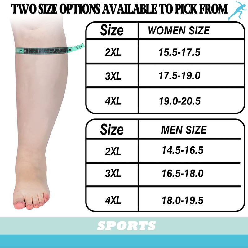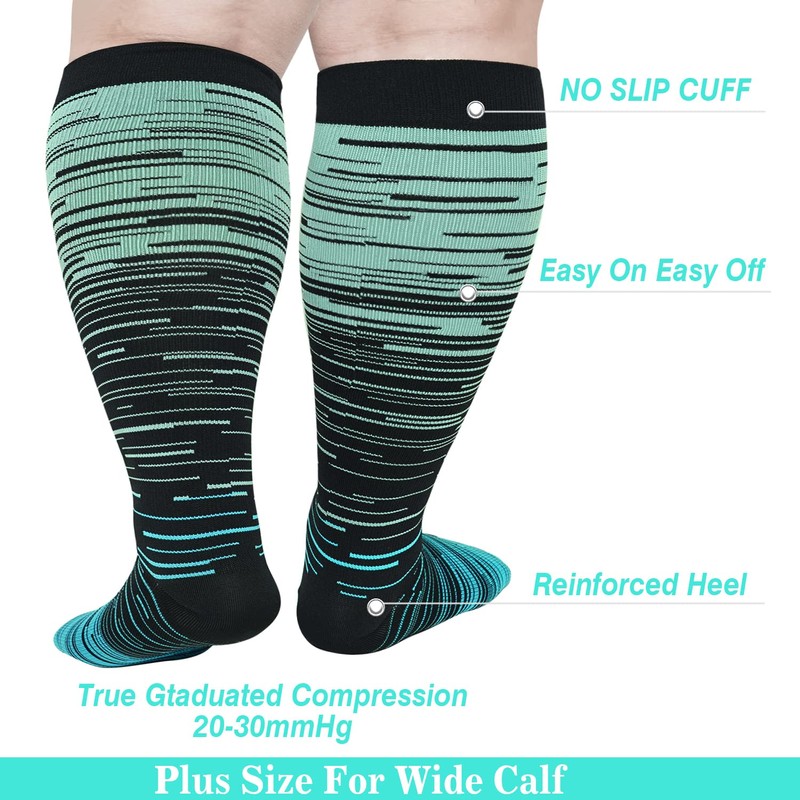 - 😙[ Plus Size Compression Socks Wide Calf ]:In order to allow more people to benefit from the benefits of compression socks women wide calf,we say that compression socks women 20-30 mmhg are divided into multiple sizes, which are more suitable for everyone (L Compression socks) 11.5-13, (XL Compression socks) 13.5-15.5, (XXL Compression socks) 15.5-17.5, (XXXL Compression socks) 17.5- 19,(XXXXL Compression socks) 19.5-20.5,(XXXXXL Compression socks) 20.5-22