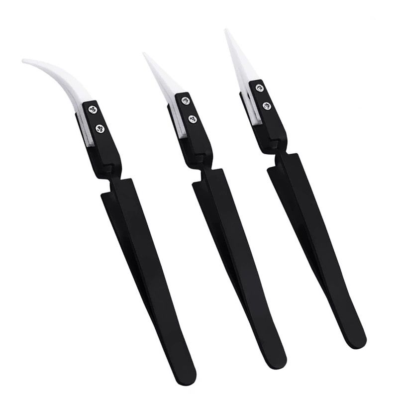 3 PCS Precision Reverse Ceramic Tweezers Kit Soldering Tool for Electronics