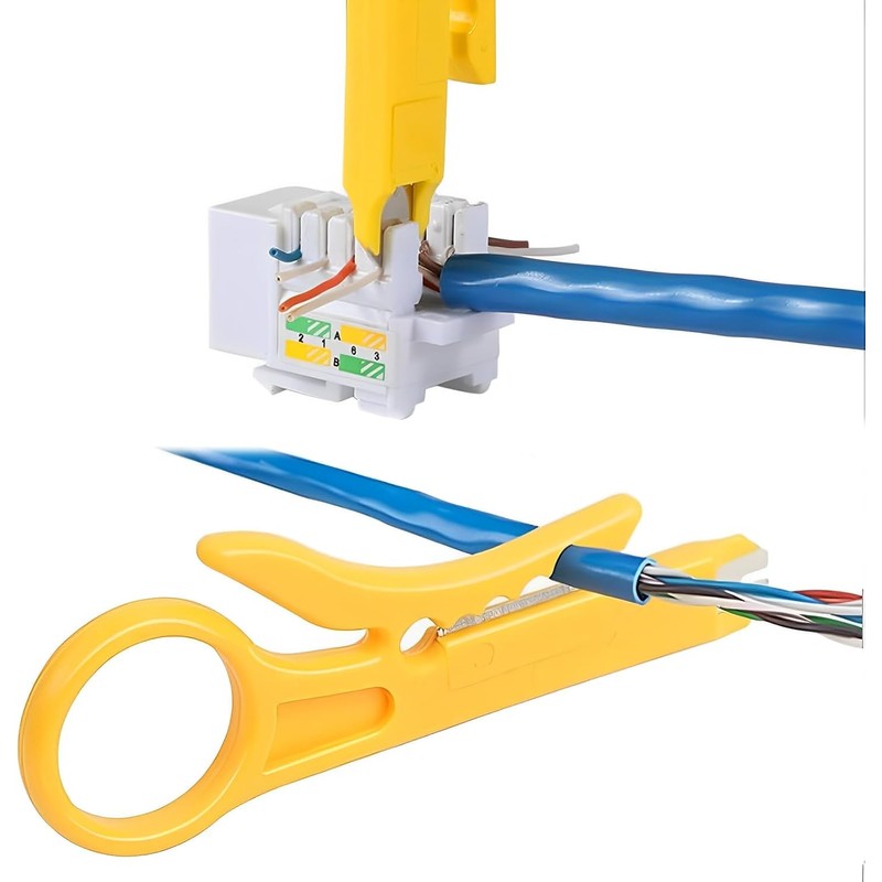 - WHAT WILL YOU GET: 1 x wire punch down tool(grey); 2 x mini wire stripper(yellow)
