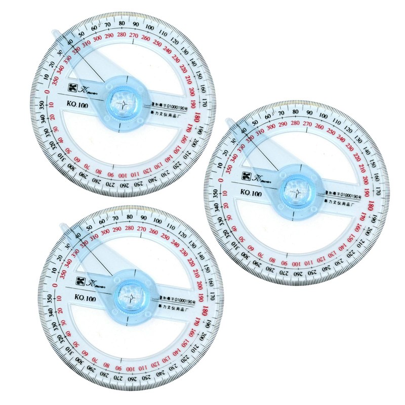 - 360° FULL ANGLE MEASUREMENT:The set includes 3 transparent protractors with two-color scale design, the measuring range covers the complete circumference to meet the needs of accurate drawing.