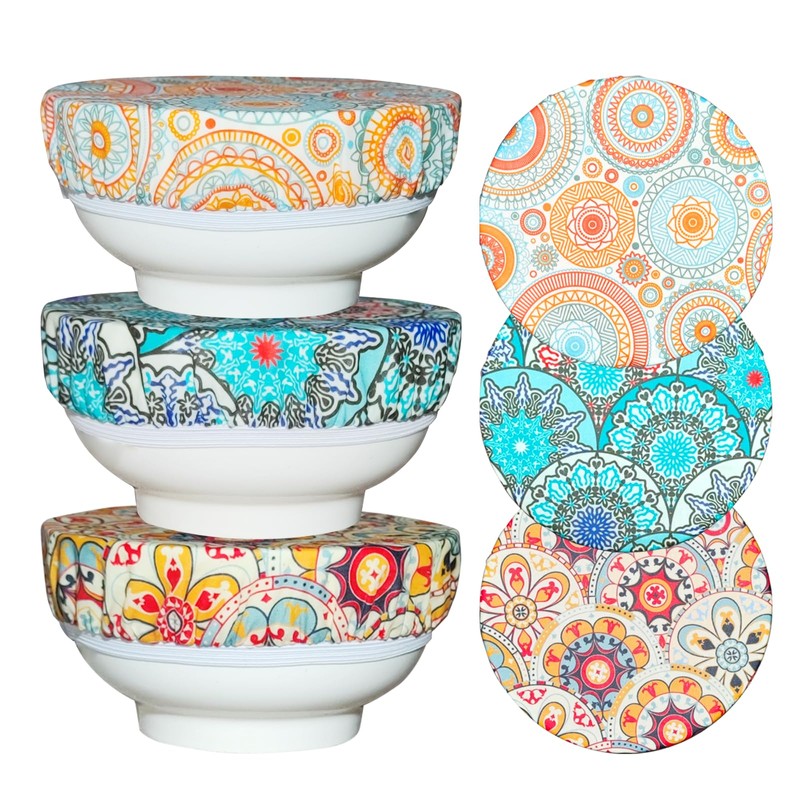 3 PCS Reusable Beeswax Bowl Lids - Beeswax Food Packaging - Eco friendly Beeswax Bowl Covers - Elastic Fabric Bowl Lids - Sustainable Food Storage Cotton Bread Lids for Leftover, Fruit, Salads