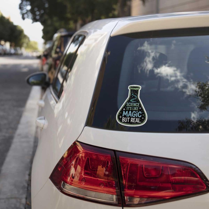 - (3 Pcs) Science It’s Like Magic But Real Sticker – Funny Chemistry Quote Vinyl Decal Waterproof for Laptop, Water Bottle, Tumbler, Car – Gift for Science Lovers, Students, Teachers – 3 Inch. Search us with: science it's like magic but real sticker; science it's like magic but real stickers; science humor sticker; funny chemistry sticker; science magic sticker; science lovers sticker; magic but real science sticker; science quote sticker; funny science decal;