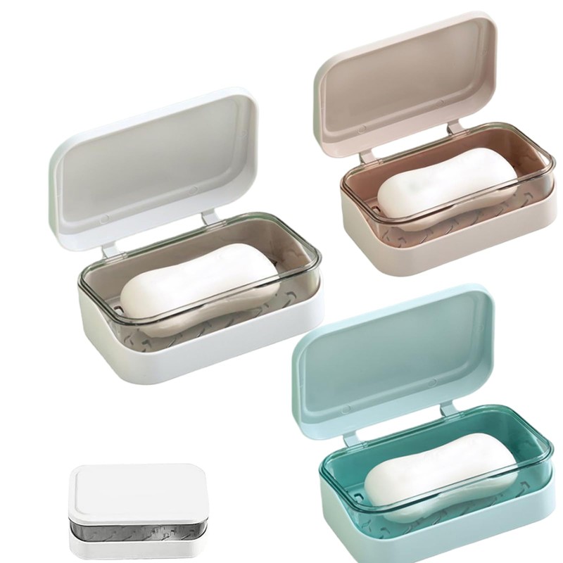 3 PCS Soap Dish With Lid Soap Box with Removable Drainer and Lid Soap Box 2 Layers Rectangular Soap Dish Container Travel Soap Dish for Shower Kitchen Travel Hiking Outdoor Gym