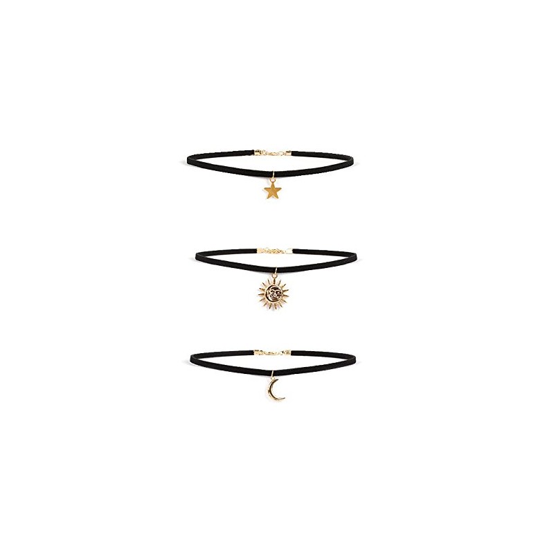 3 PCS SZJYKF Sun Moon Star Necklace Black Velvet Choker Necklaces Gothic Vintage Crescent Necklace Sun and Moon Pendant Necklace Jewelry Gifts, Zinc, No Gemstone