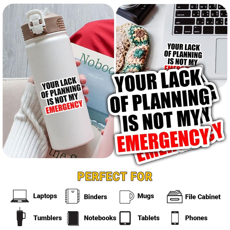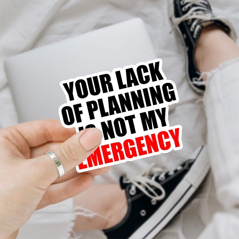 - (3 Pcs) Your Lack of Planning Is Not My Emergency Sticker – Funny Sarcastic Office Quote Decal Waterproof for Laptop, Water Bottle, Notebook, Car – Gift for Coworkers, Students, Managers – 3 Inch. Search us with: your lack of planning; a lack of planning on your part; a lack of planning on your part sign; lack of planning on your part sign; lack of planning on your part; a lack of planning on your part mug; know your limits sticker; not going back sticker; funny caution stickers; lack; blue collar hard hat stickers; planner vinyl; stickers for my planner.