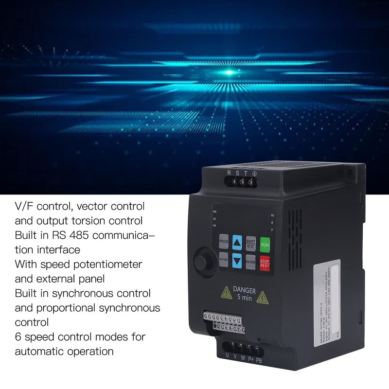 - EASY OPERATION: The inverter is equipped with speed potentiometer and external panel for easy operation. Built-in synchronous and proportional synchronous control, plus 6 speed control modes, enable the inverter to operate automatically and adapt to different load conditions.