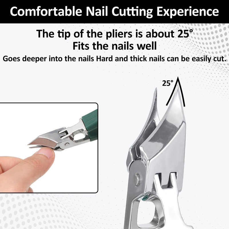 - Sharp and Precise Blade: The nail clippers feature a unique angled blade design that allows for precise trimming of difficult to handle edges and nail inserts, effectively reducing pain and inflammation risks, providing a safe and comfortable trimming experience.