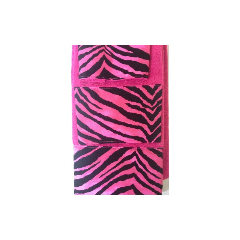 3 Piece Bath Towel Set- Black Pink Zebra Print Wash Had and Bath Towel