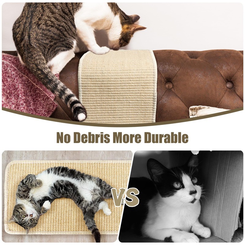 - HIGH QUALITY & DURABLE Our cat scratching mat is made of 100% natural and high quality sisal, which makes it sustainable and durable. Compared to conventional scratching cardboard, it produces less dirt and lint on the floor. With its robust and durable surface, it can withstand even the sharpest claws and offers your cat long-lasting scratching fun