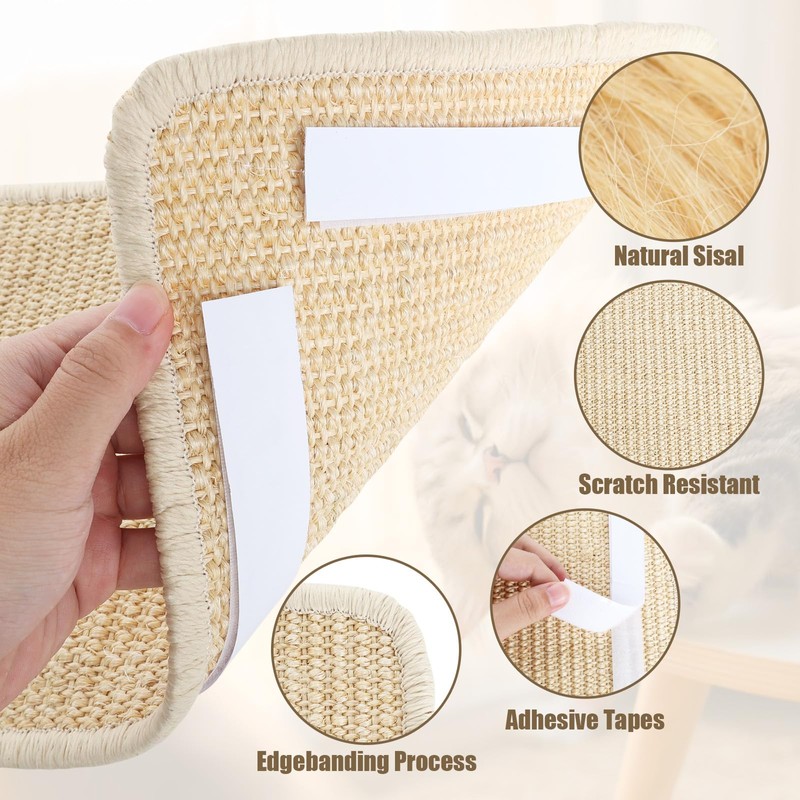 - Absolute Stability & Non Slip - Thanks to the non-slip design and the use of Velcro and double-sided tape, our cat scratching mat guarantees a secure and stable attachment. It can be easily attached to smooth floors, walls or sofa sides, so you can effectively prevent your cat from scratching your furniture