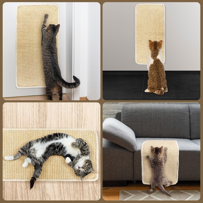 - VERSATILE PROTECTION FOR YOUR FURNITURE This cat scratching mat is versatile and can be applied to walls, wood, glass and many other surfaces to meet your cat's scratching needs. In addition, it can also be used as a comfortable cat sleeping mat, litter box mat or door mat to provide your cat with a warm and soft play environment