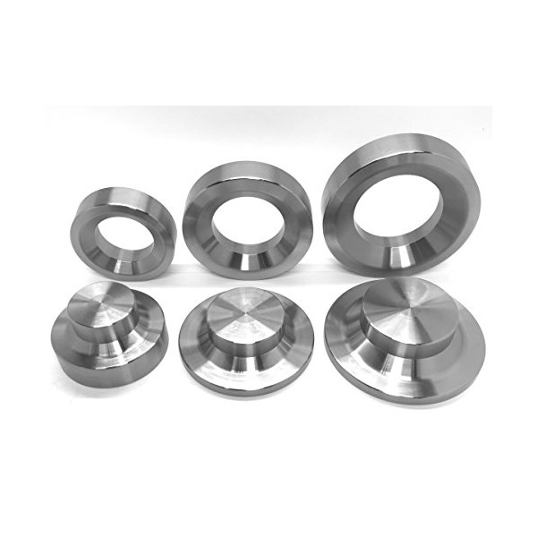 3 Piece Dimple Die Set Metal Fabrication Set Kits consists of the following dies: 1-1/4"(1.250) 1-1/2" (1.500) 1-3/4" (1.750) Everything shown in first image. Dies are CNC machined from premium SAE 8620 steel with a Rockwell hardness of 80. These dies are great for virtually anything you can dream up. Common uses are : -Providing rigidity to sheetmetal projects. -Lightening up builds -Dimple die skid plates-front bumper plates-floorboards-foot pedals-footrests and many more uses. -Use the raised side of the dimpled material for added traction on running boards and floorboards. -Or just use them to add that extra RAD look to any project !!!!! More Details: Made for use with a hydraulic press or arbor press. Holes must be drilled before you dimple the materials.(These do not act as punches) We recommend no thicker than 1/8" material. Customers have done thicker-thats your final call. We recommend lubricants when using the dies.This will reduce die wear and gulling.